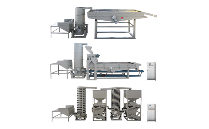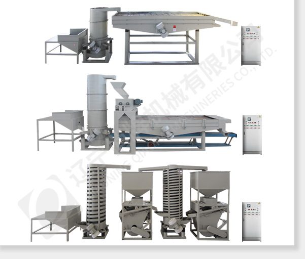 脫殼分選單元:上料斗、螺旋提升機(jī)、脫殼分選主機(jī)、回料板簧篩。